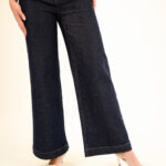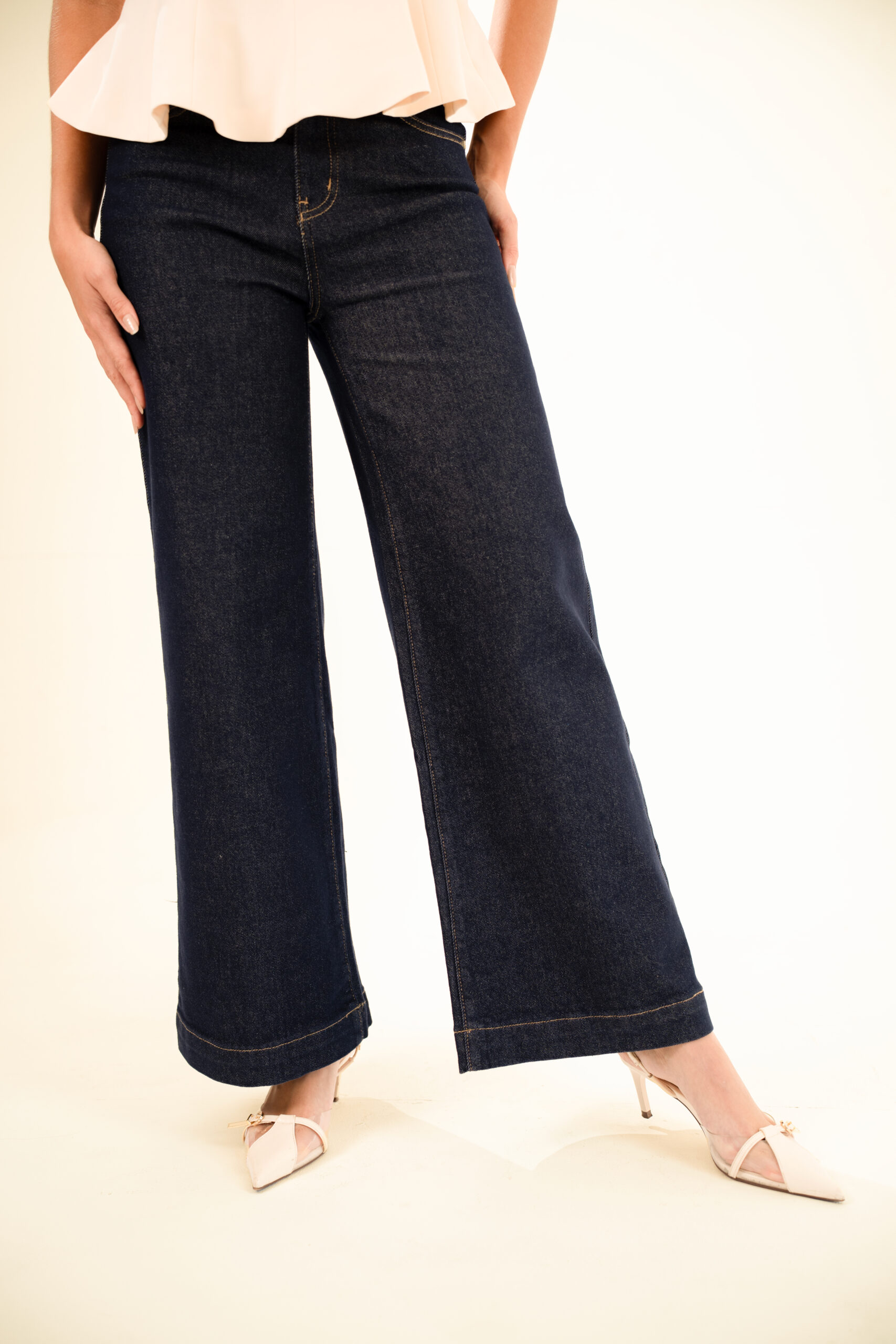 Pantalón en denim oscuro con detalle en bolsillos traseros,