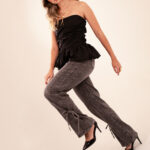 Tiene cuerdas en la parte inferior para ajustar el pantalón a tu estilo, elaborado en denim con elastano, se adapta muy bien al cuerpo y es cómodo. Silueta favorecedora y fit perfecto, ideal para looks casuales o más urbanos.